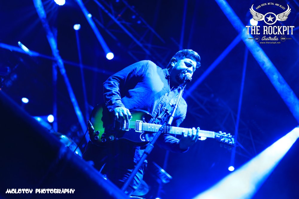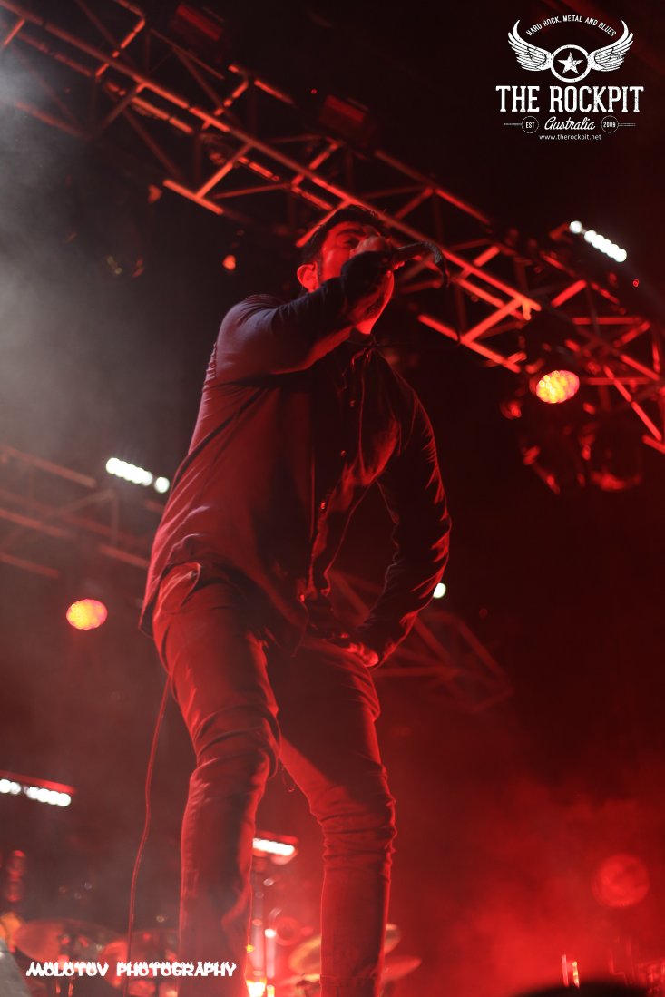 What really needs to be said about Karnivool other than, let’s face it – one of Perth’s greatest exports who hit the stage to a heroes welcome. Kicking off proceedings with simple boy lead singer Ian Kenny and the rest of the band, they seemed very enthusiastic about being on the tour. “Goliath” kicked off next with – excuse the pun – but a seriously monstrously sound I believe that even at this early point people were totally awe struck. “The Refusal” and “Set The Hive” set the tone for what was a pretty much flawless performance, the rest of the band deserve all the praise also as they had the crowd eating out of their proverbial palms.