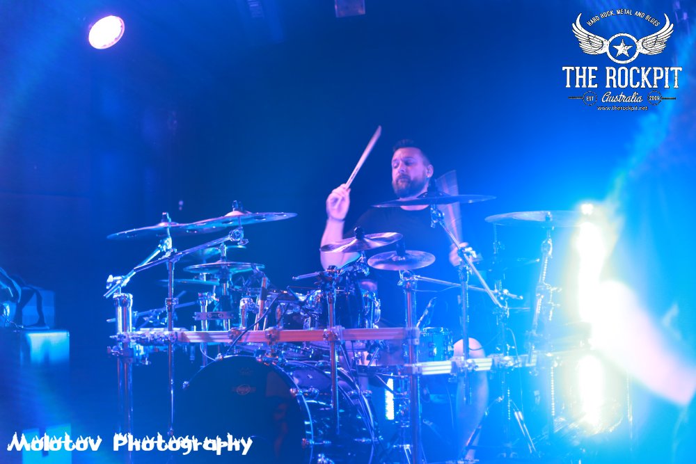 Now the growing crowd suitably warmed up it was time for Melbournes “I Valiance” to take to the stage. Now for the first time listener these guys pack some real punch with electronic tinged metal that keep tonight’s masses moving which by this time there is a sizable audience to witness the carnage. These guys really mean business with an endless supply of twists and turns, as a reviewer these guys stood out with an abundance of stage presence and technicality.