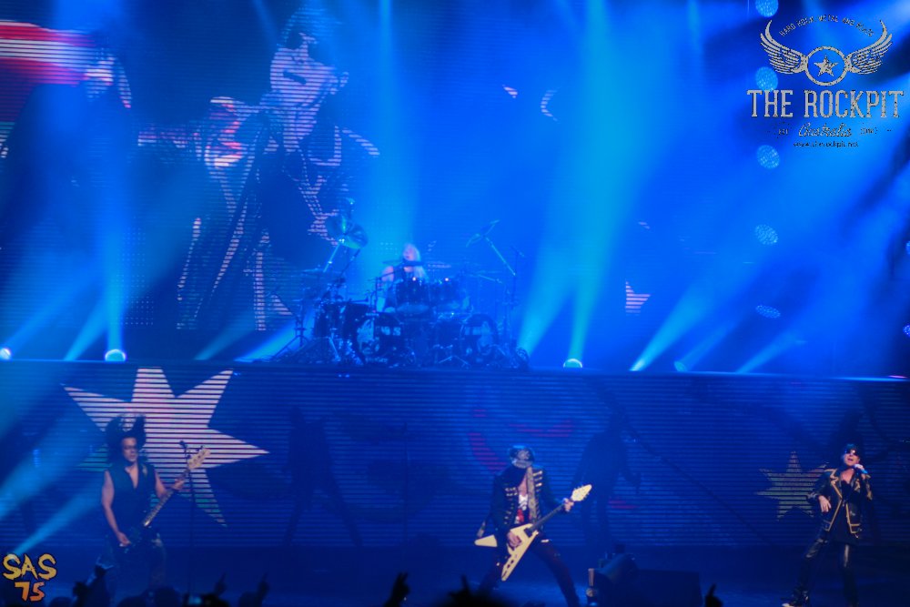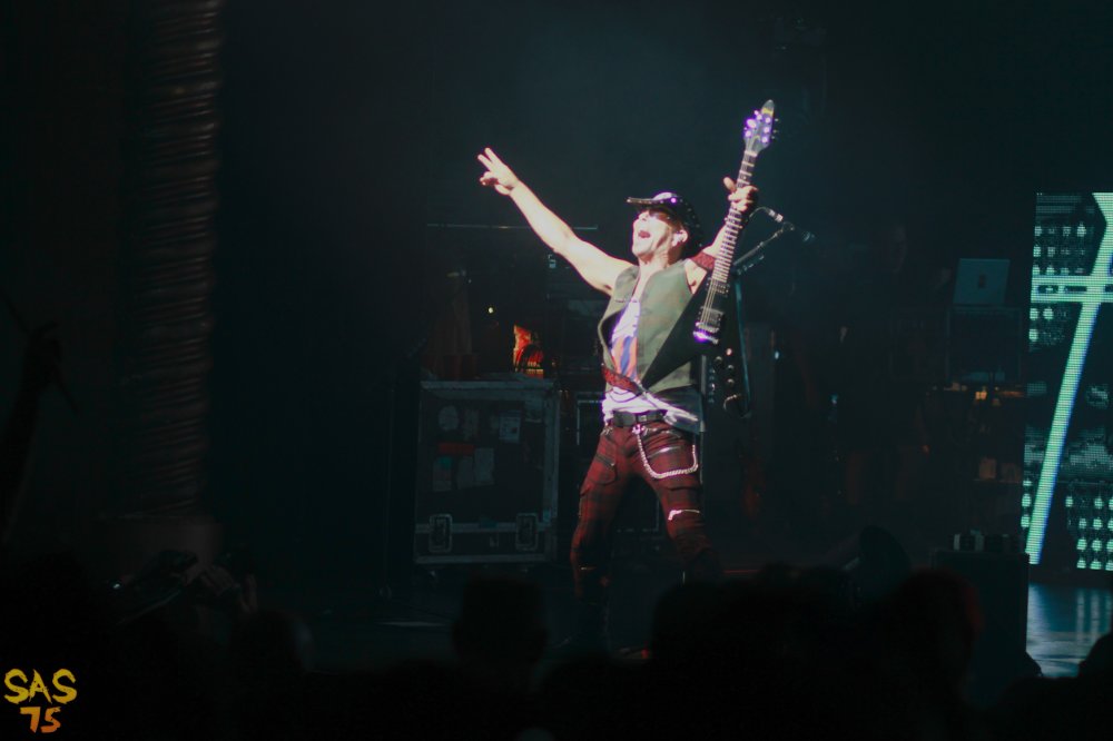 Whilst the Palais is not exactly a small venue, I wasn’t quite expecting the bands full stage and light production, which was used to full effect. Having former Motorhead drummer Mikkey Dee now in the band, it was no surprise a tribute to Lemmy featured, with the sound cranked up to the customary 11 throughout a storming version of Overkill, featuring a backdrop of Lemmy images. Drum solo…yes of course, we got that too from Dee, with the visual effects throwing up a collage of Scorpions albums covers. An absolutely storming version of Blackout followed, with Schenker firing up a smoking guitar to the backdrop of wailing sirens.