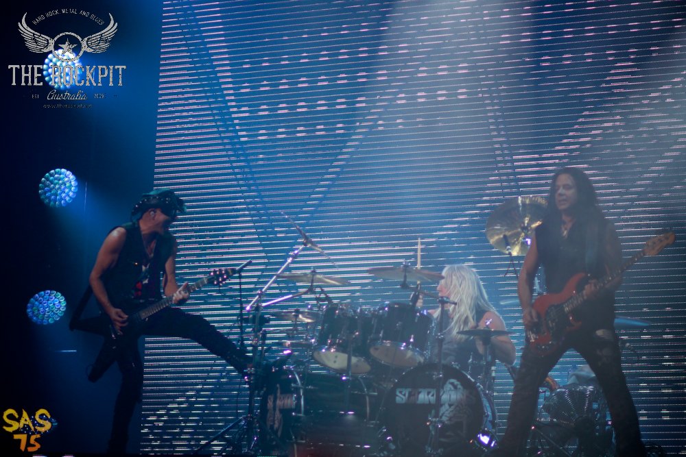 For Aussie Scorpions fans that have waited patiently for the legendary Germans to hit our shores, last night’s performance at a sold out Palais Theatre certainly proved well worth the wait. The band tore through a ripping 100 minutes with an energy and enthusiasm that belied the fact that they’re out touring their 50th anniversary. With no support act and hitting the stage bang on the scheduled time of the school friendly 7.45pm, they hit the ground running from the get go and delivered a truly memorable and flawless performance that was constantly captivating.