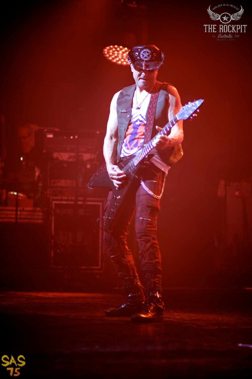 Going Out With A Bang from most recent album Return To Forever kicked things off and for a venue generally notorious for enforcing a sit in your seat policy, it was great to see Scorp’s fans proudly on their feet where they remained for the entire performance. Founding members Rudolf Schenker and Klaus Meine both rocked with an energy and enthusiasm defying their respective 68 years. Klaus was vocally in full flight all night and who actually counted how many drumsticks he threw into the crowd…28 I think it was? Schenker on the other hand, bounced around the stage tearing through classics on his customary Flying V’s, including an acoustic V. Lead guitarist Matthias Jabs, nearing 40 years of service, had numerous moments to shine in the spotlight, with the instrumental Coast To Coast being a highlight for me, albeit a bold setlist choice fourth song in.