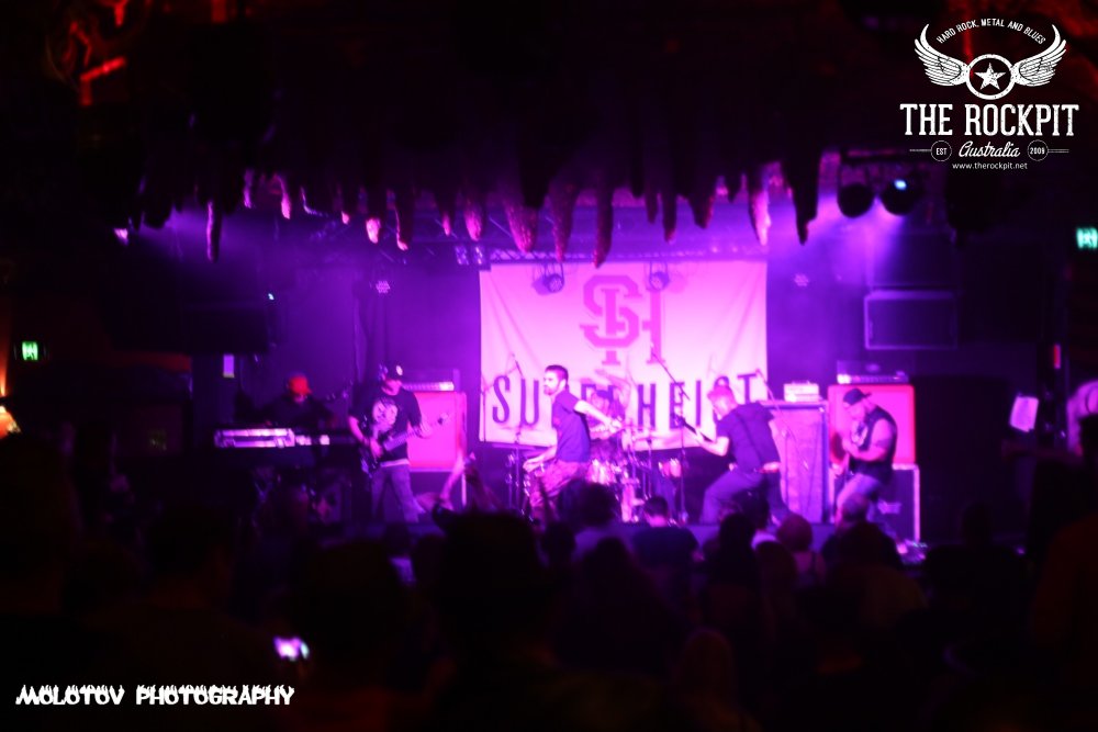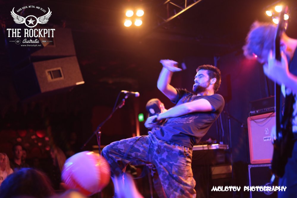 The time came for Headliners Superheist to fill our minds with sweet sounds. As the crowd chanted “SUPERHEIST” the stage darkened and the band came on stage to a flurry of blue lights. New Frontman Ezekiel Ox simply stated “7 Years Perth” and launched into the epic song ‘The Fightback’. We’ve waited so long to hear the body rattling Bass from Drew Dedman and he didn’t disappoint, playing bass guitar like the god he is. As they played ‘Back to Base’ Frontman Ezekiel decided he wanted to party with the rest of us jumping off stage and making his way to my direction standing in front of me singing to me. Then two punters took it him on their shoulders and carried him around while he never missed a single beat.