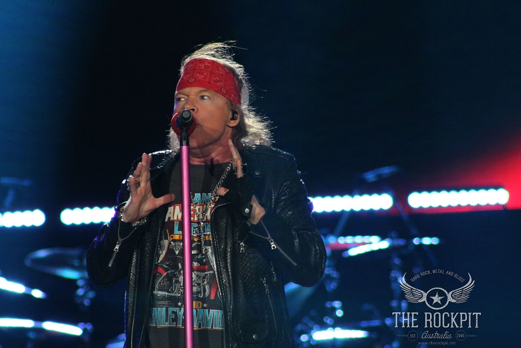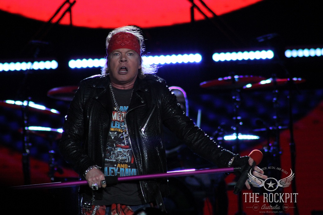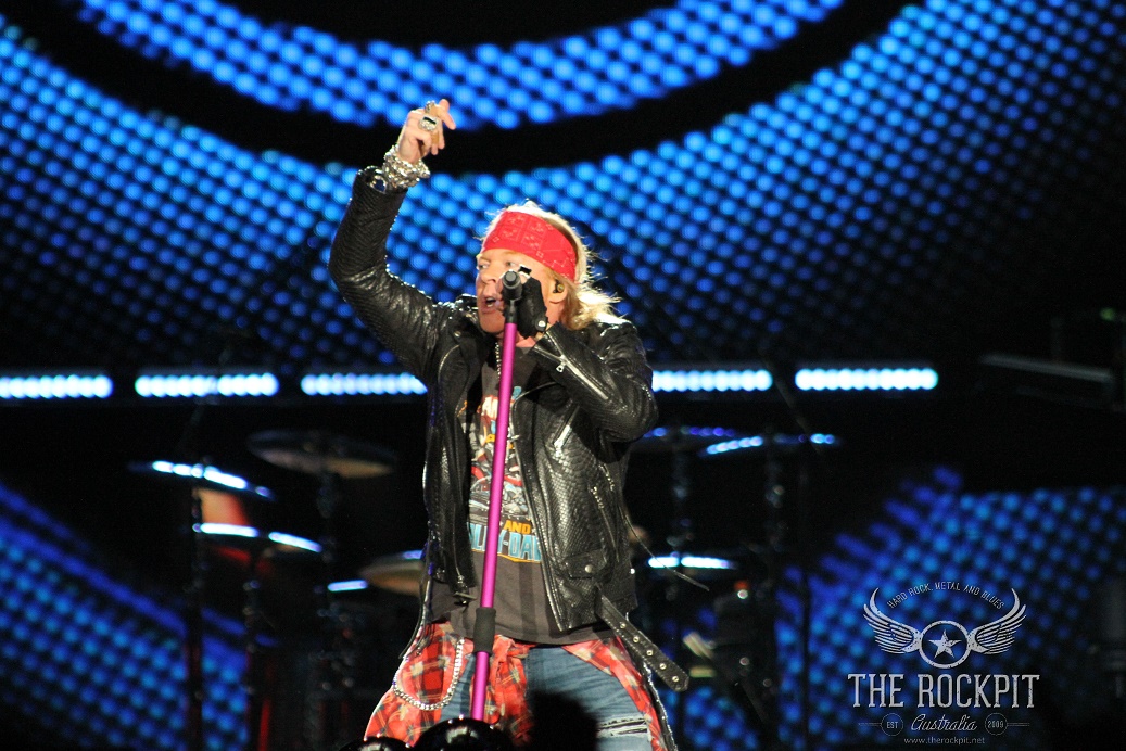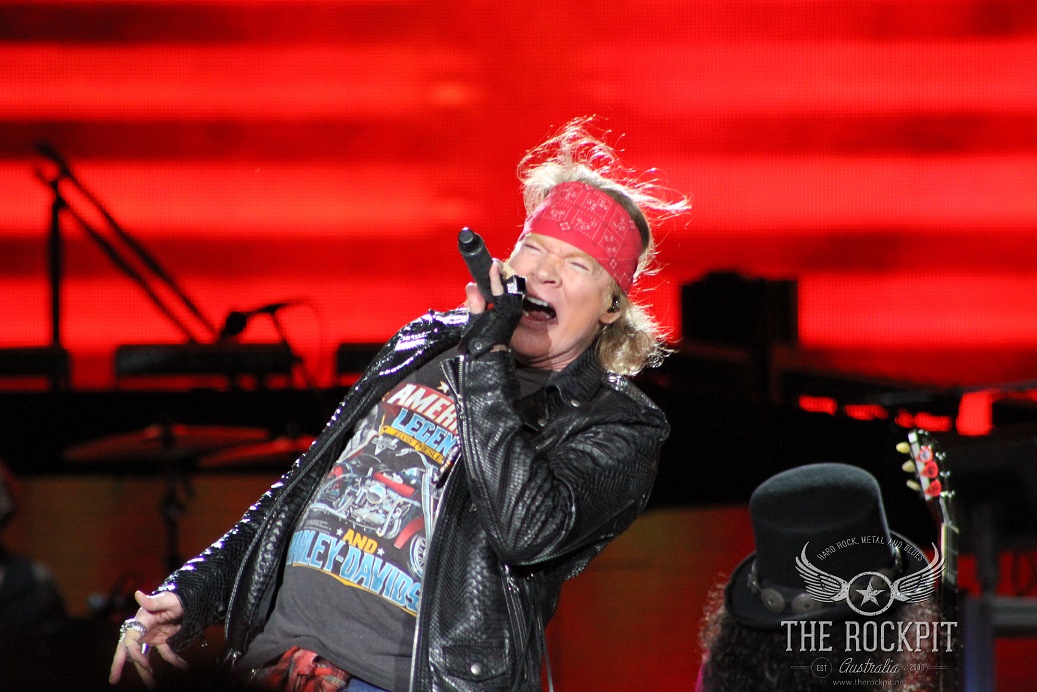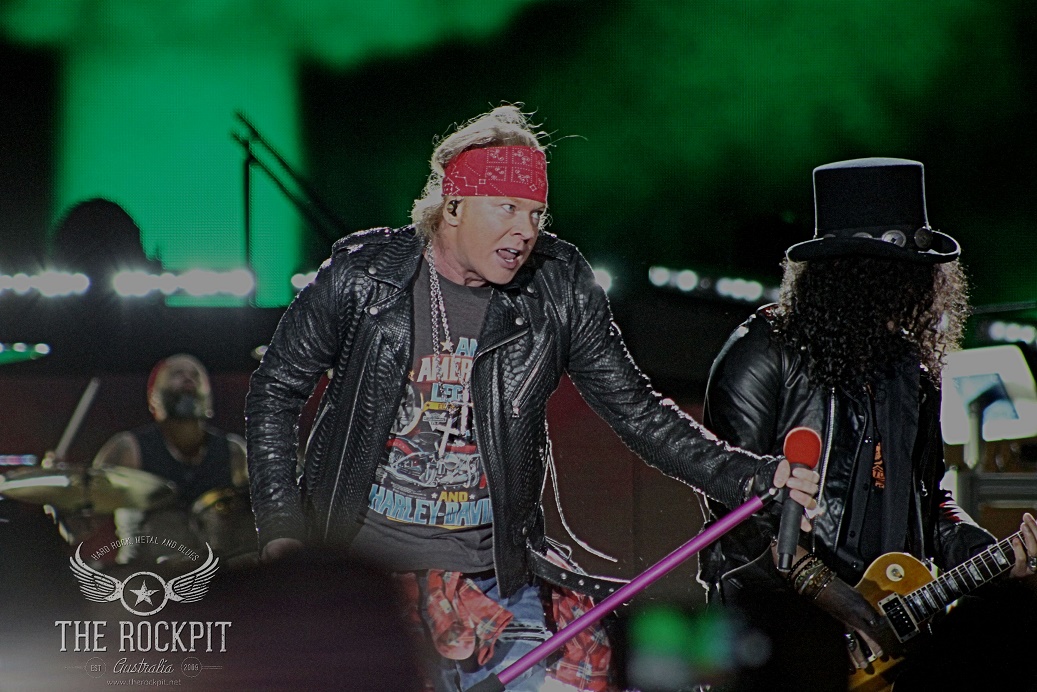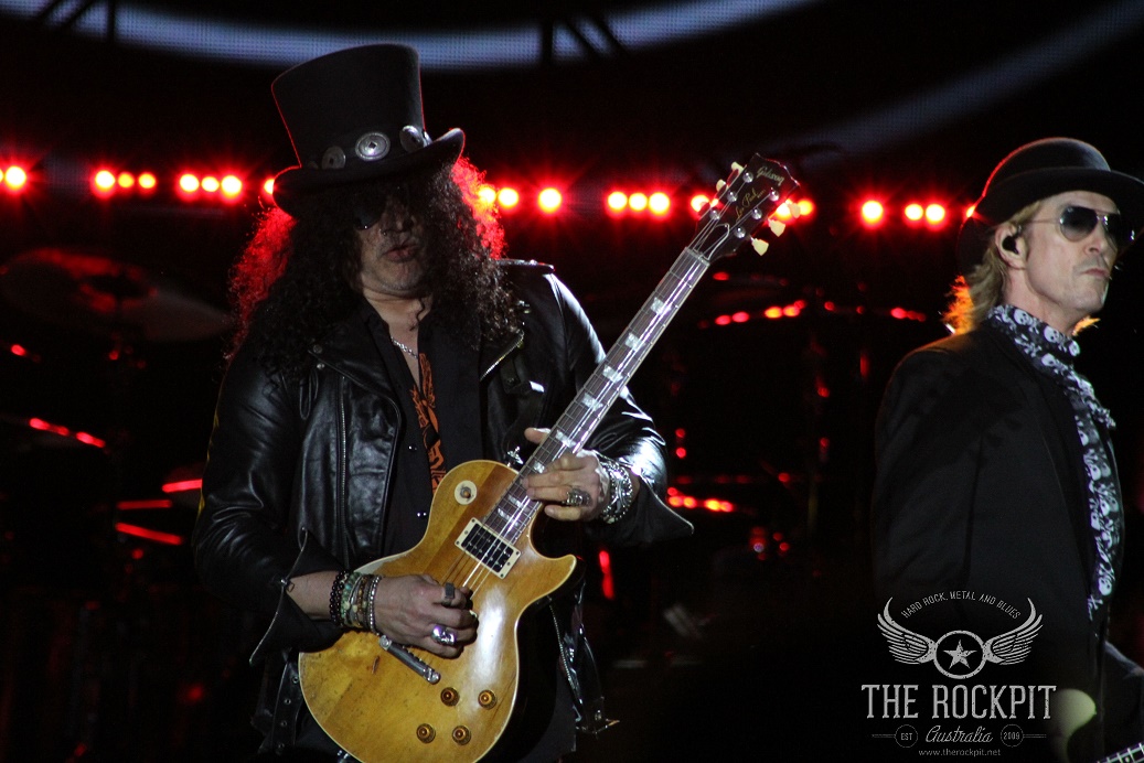 It was a reunion that people always wanted but never thought it would happen. The legacy of Guns N’ Roses has always been remembered as the original lineup from the “Appetite For Destruction” era, whether it be based purely on the music that was created among the 5 members or the fact that each individual was a character all of their own. While Izzy Stradlin’ remained fairly quiet and Steve Adler hid behind the drum kit, the trio of Axl Rose, Slash and Duff McKagan were intoxicating in both their stage presence, writing prowess and their personalities. Individually they brought something special to the table but collectively there was something magical about their unity in creating and performing music that would go on to become legendary. While Izzy is still sorely missed in more ways than one and having even Matt Sorum would of been at least partly nostalgic, we still got to witness a reunion that none of us thought would happen. But it did and it came to Perth on the final show of the “Not In This Life Time” Australian tour.