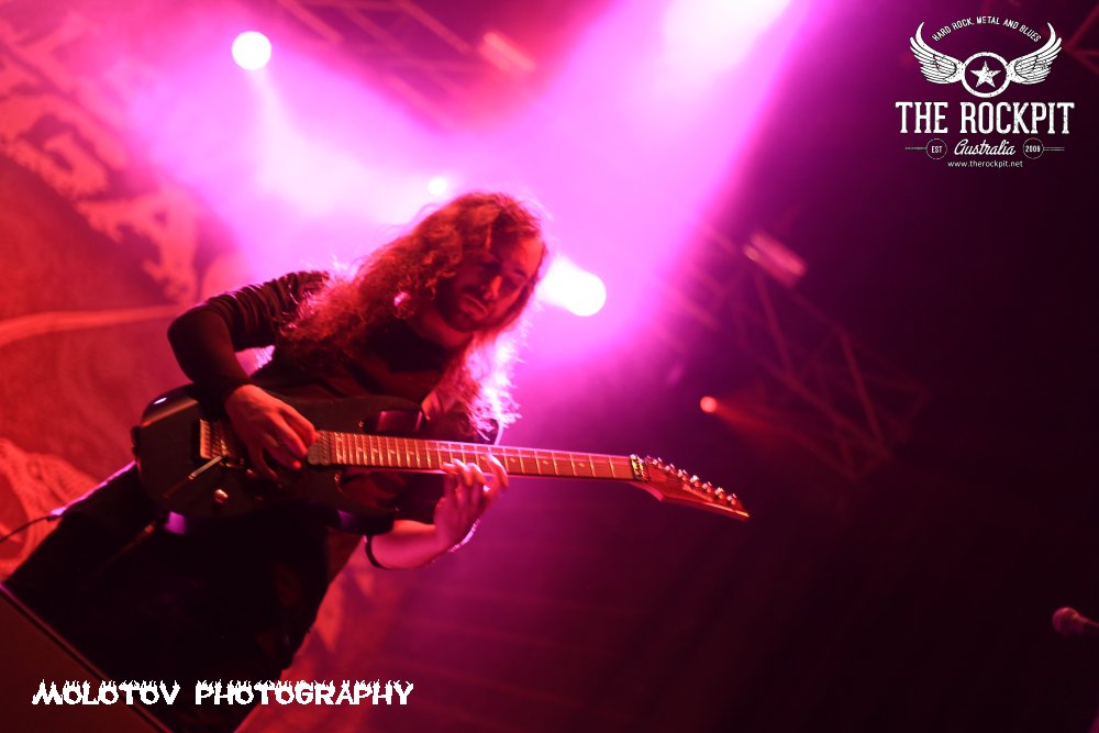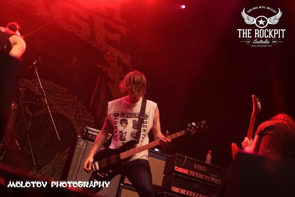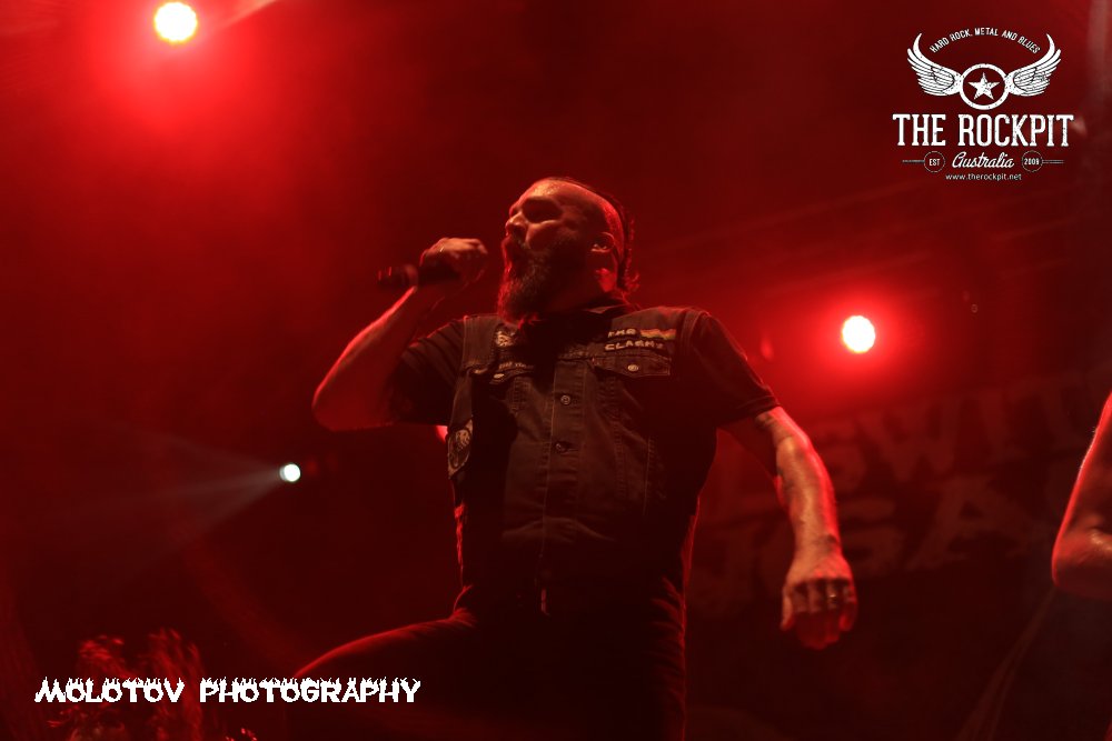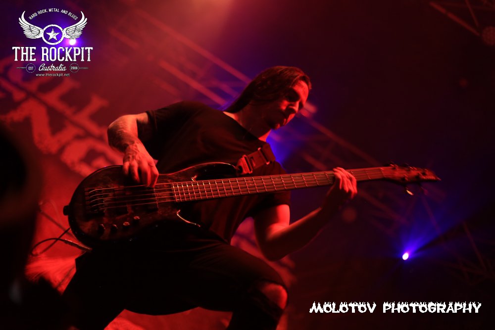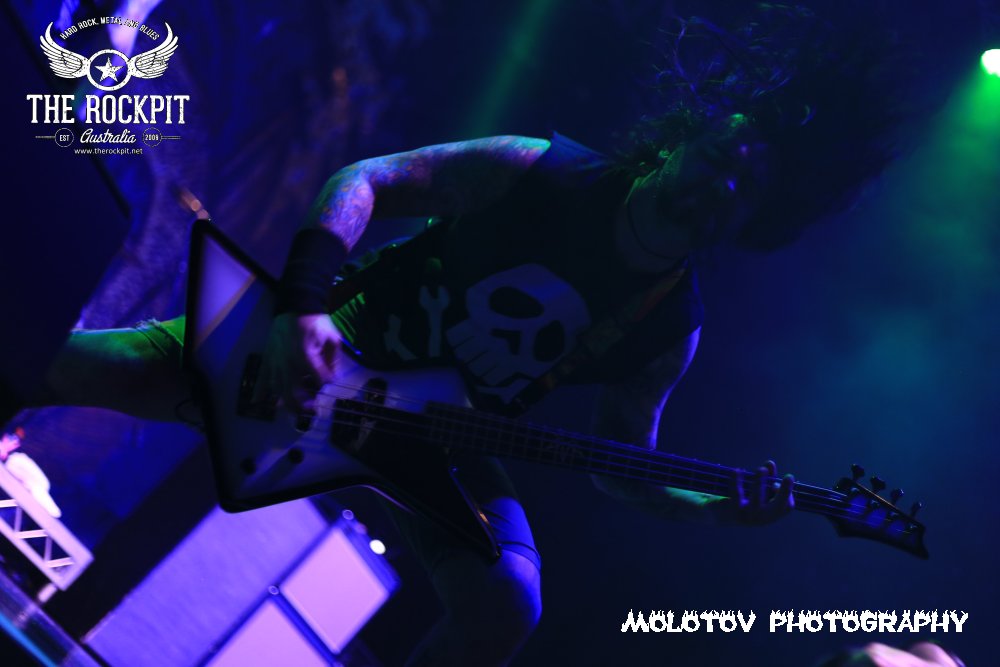 First to take to the stage a very short sharp and violent way to kick off tonight’s proceeding was Perth based brutes Cursed Earth taking tracks from their last two releases. For me the set was way too short to really guage any form of reaction but what I did see was a band with a ton of venom mixing a hardcore beatdown vibe with chainsaw rhythm section and percussion that left your head spinning. Overall enjoyable and certainly got the crowd moving.