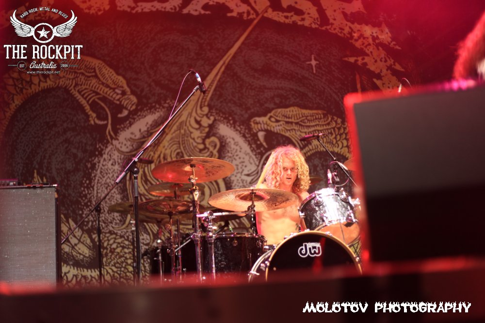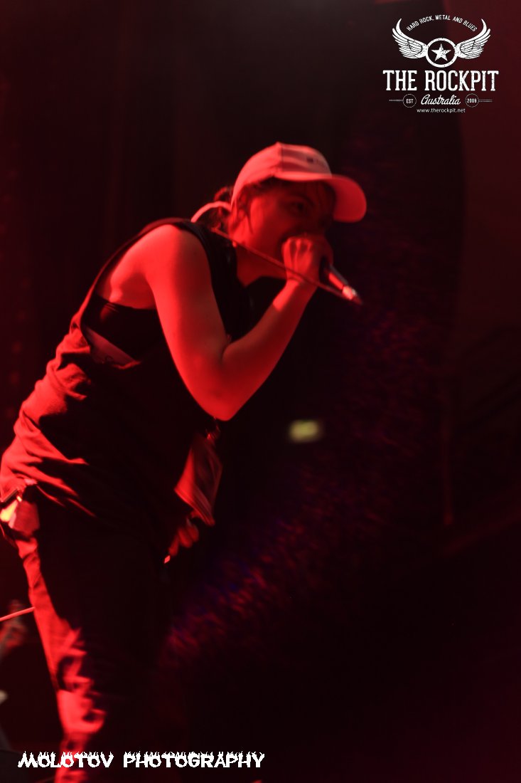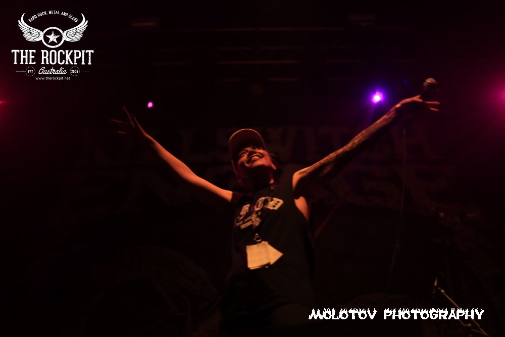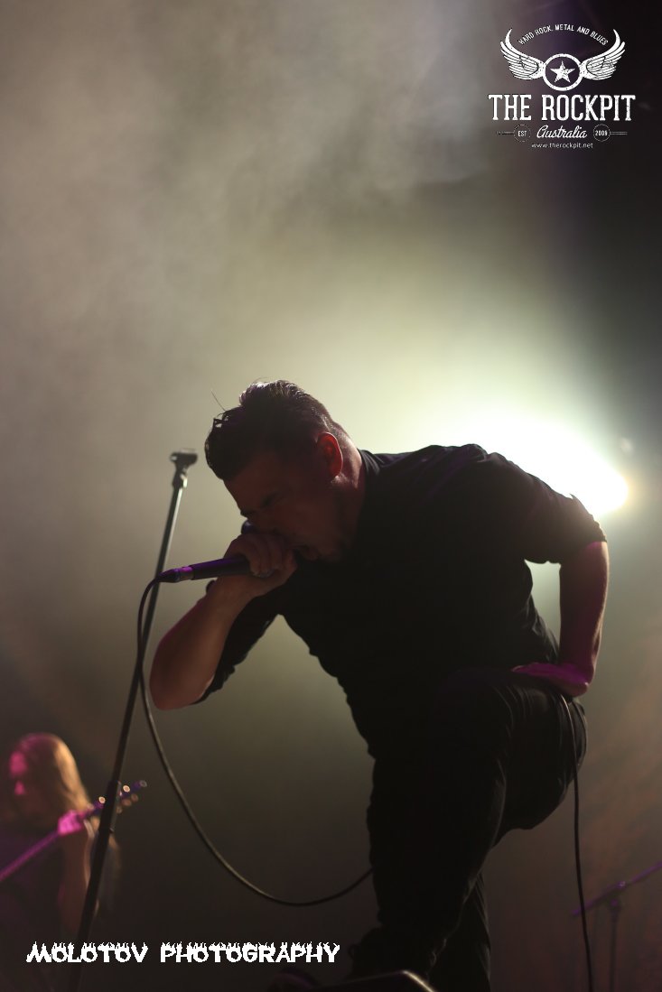 First to take to the stage a very short sharp and violent way to kick off tonight’s proceeding was Perth based brutes Cursed Earth taking tracks from their last two releases. For me the set was way too short to really guage any form of reaction but what I did see was a band with a ton of venom mixing a hardcore beatdown vibe with chainsaw rhythm section and percussion that left your head spinning. Overall enjoyable and certainly got the crowd moving.