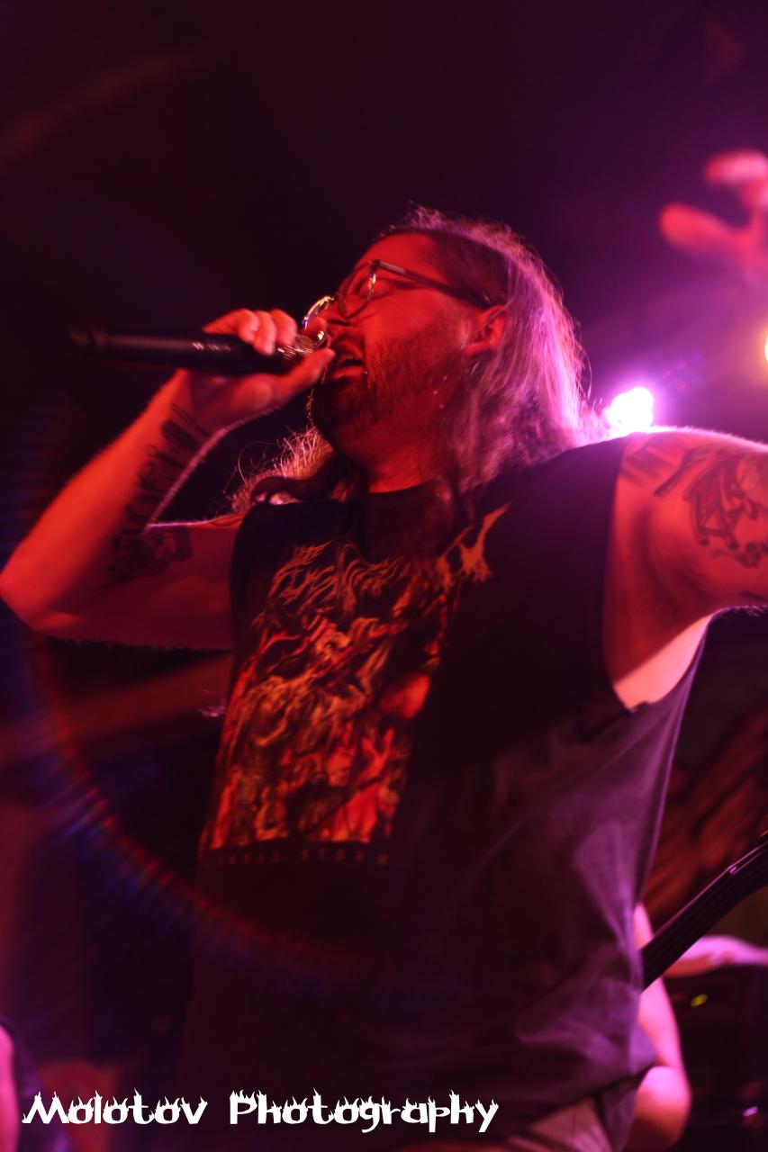 The set in terms of song choice was a real mixed bag going back to 2005’s “The Archaic Abattoir” right up to more recent times like “Retrogore” but the stand out track for me though was “Bit By Bit” from the aforementioned album. I could sum up the band’s performance in three words – devastating, exhilarating and methodical. The guitar sound alone was enough to wake the dead and by the end of their set, there wasn’t a body on the floor who wasn’t punished by that sound!