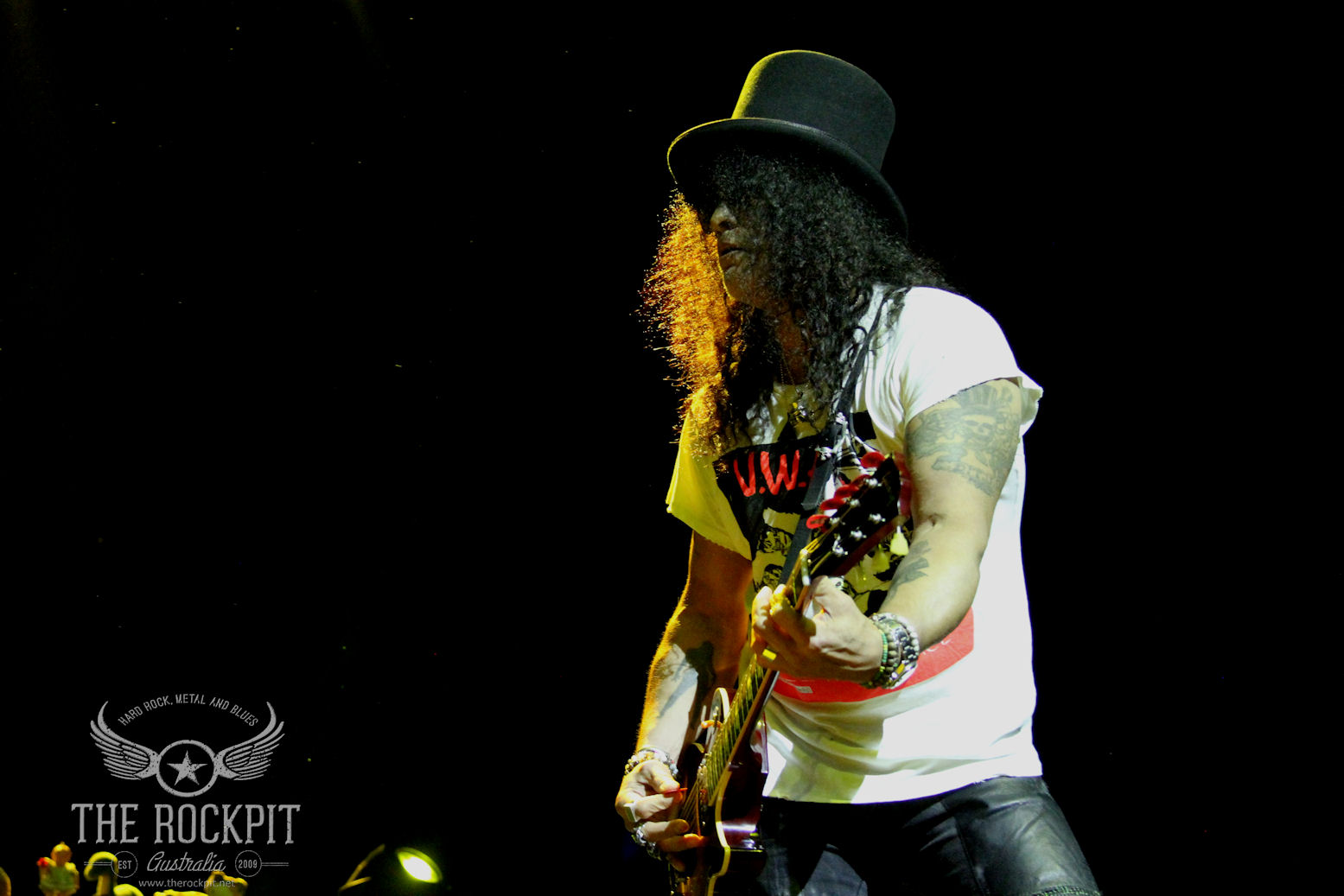 Slash and the A-team of hard rock – Myles Kennedy & The Conspirators, rolled on stage next and after a short intro, it was all systems go! The interesting thing about tonight and about the entire tour really was the choice of venues for the shows. The last time we saw Slash on a headline show was at the Forum Theatre in Melbourne and a few years before that, at Metro City in Perth. This time they went for arenas, a massive step up in terms of crowd numbers and stage sizes etc and I can’t speak for the other shows (assuming they did well as the east coast usually does), but Perth Arena didn’t quite make the cut. But that didn’t stop the band putting on one hell of a show.