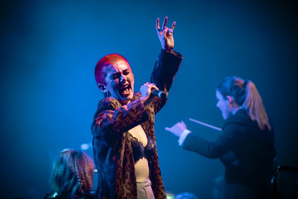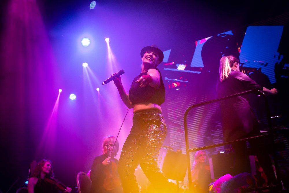 First to take to the stage was Irish non-binary Fremantle-based vocalist Freddie Mai with their buzz-cut bright orange hair akin to the early Eurythmics album covers from the eighties. There aren’t many more iconic songs than ‘Sweet Dreams (Are Made of This)’ and after a nervous start Mai soon got into the swing of things as they took on the duos early years with songs mostly taken from the third album ‘Touch’, which was released way back in 1983. ‘Right By Your Side’, ‘Who’s That Girl’ & ‘Here Comes The Rain’ were taken on very much with Mai’s emotive and passionate style as they strutted and strode across the stage in an almost anarchic manner, before disposing of their overcoat to reveal a whimsy black bra and baggy trousers. The energy in the room began to lift as the orchestra lead us into ‘There Must Be an Angel’ with Mai joined by Sabrina Davies, to tumultuous applause to give the song an extra boost.