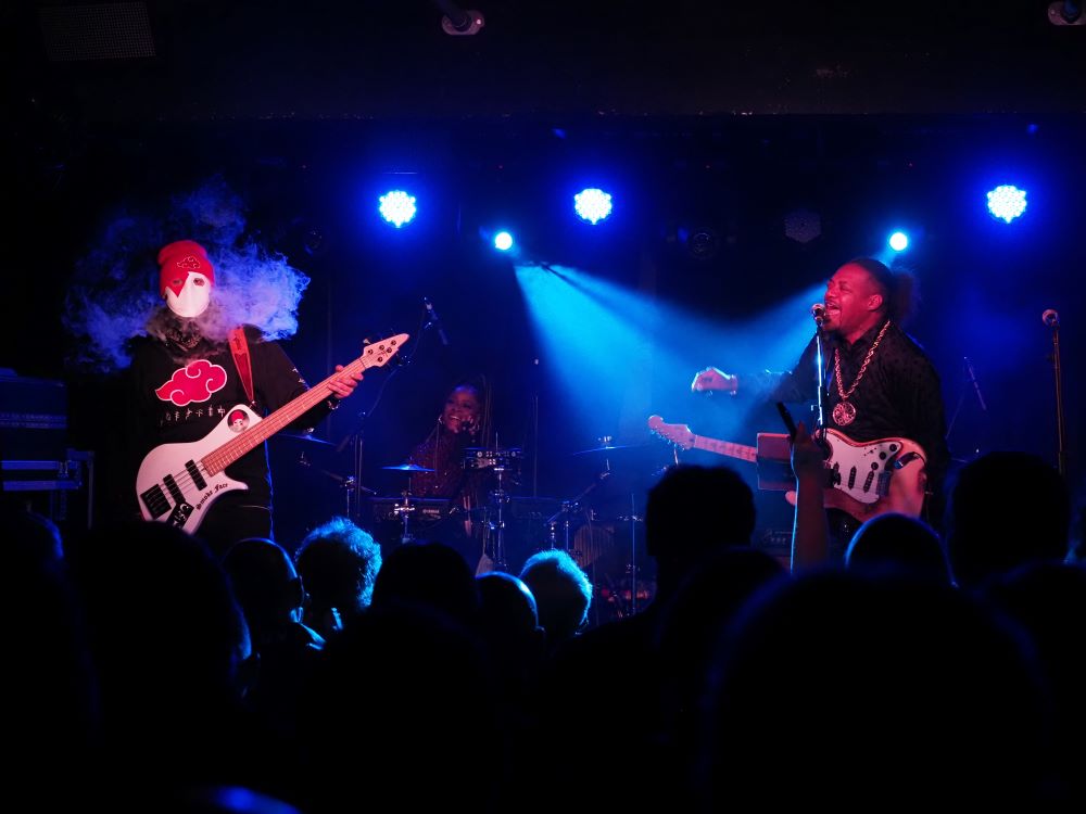 On ‘Take Me As I Am’ LaDonna, Eric’s wife takes centre stage to showcase her stunning vocals, before moving back to her position as percussion and backing vocals. Mention must be made of Jonathan Lovetts sublime piano and keys as well as Nick Hayes on drums as solid as they come and how can you not mention Smokeface. The mask and the smoke maybe what we see and talk about, but the bass playing is on another level – awesome.