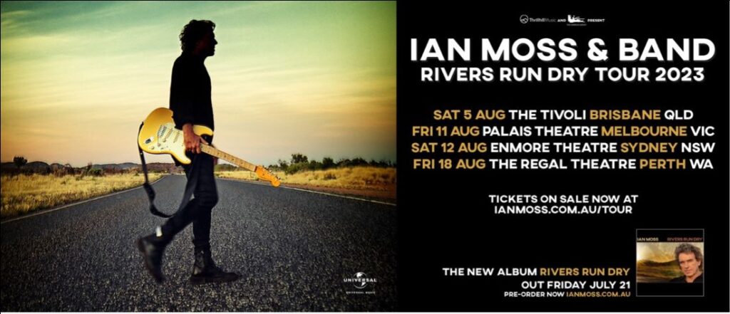 Ian Moss database members can secure early-bird tickets for the Rivers Run Dry Tour Solo & Acoustic Mode regional shows from 9.00am on Monday 29 May to 11.59pm on Monday 29 May (local times). To register sign up at RRDpre-sale2023