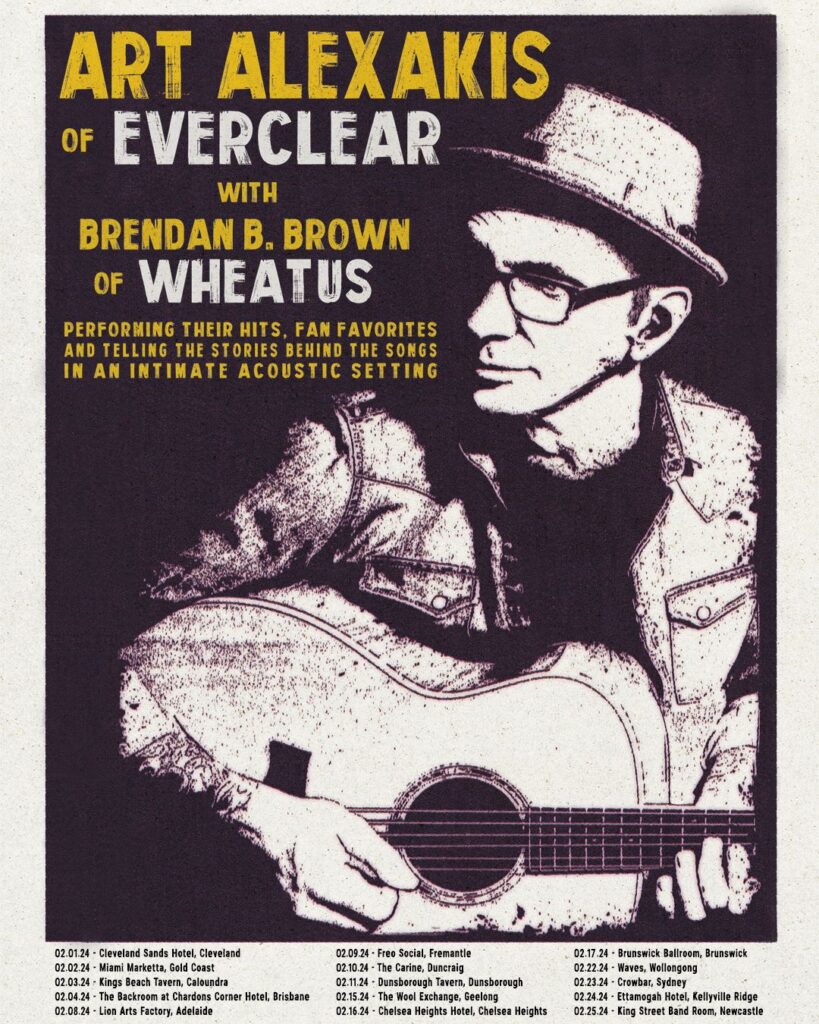 Don’t miss Art Alexakis (Everclear) and Brendan B. Brown (Wheatus) on their National Australian tour in February 2024. Tickets are on sale now, with VIP meet & greet packages also available. For all tickets & more info, head to www.everclearmusic.com/tour