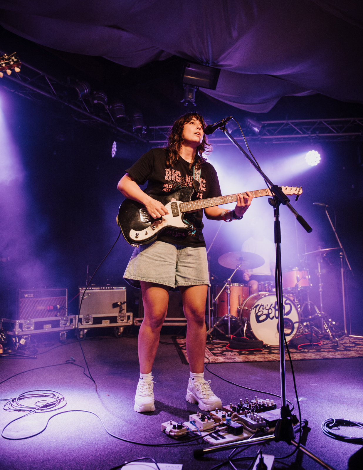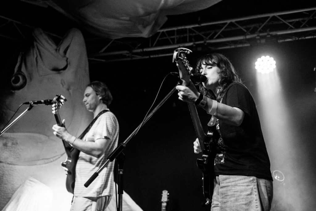 The Beths paused to take turns playfully introducing each other before diving into their next song with faster, heavier riffs. The atmosphere was exciting throughout the entire performance by The Beths, the crowd enjoying every song and singing along so loudly that I almost couldn’t hear the band at one point despite being only a few metres away from the stage and the speakers. They were very engaging with the crowd, asking if anyone read as the bass player Ben was writing a blog while they were on tour about breakfast and travel updates.