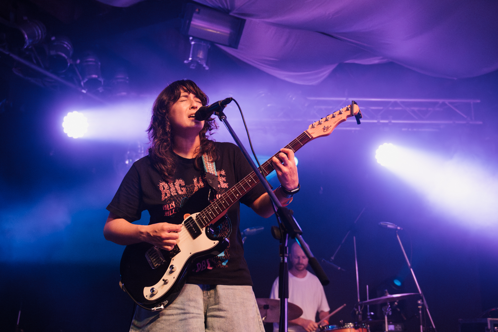 The gig was put on pause as Juice Webster stopped to check on an audience member who had fallen, making sure they were alright, her caring nature evident and not just through her songs but in real life too. Juice Webster sung her vulnerable heart out as she opened up to the crowd through her music about love found and love lost, about having heart-trouble but at the same time wanting that someone to stay close by her side. Her final song was called Headache, which is ironic because I could listen to Juice Webster’s sweet, beautiful melodies complemented by simple guitar riffs all day long, and it would be the best headache cure. A sentiment shared by the crowd as she wrapped up her set, to rounds of applause and cheers.