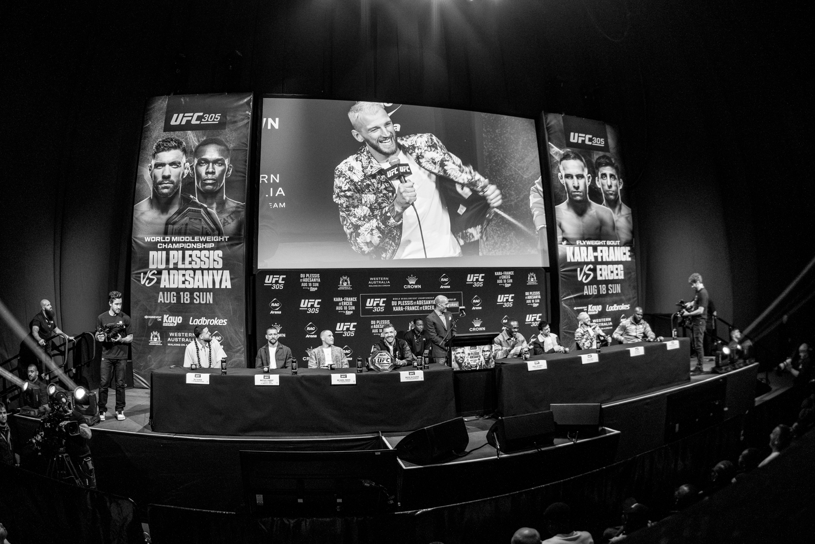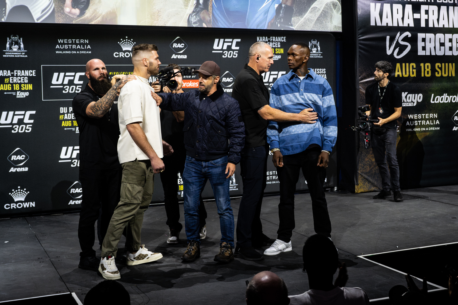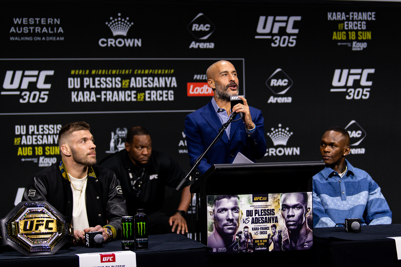 Emotions were high during a heated UFC 305 press conference at Perth’s RAC Arena with Israel Adesanya looking visibly shaken by the event’s end. As expected, all eyes were on Adesanya and his opponent, UFC Middleweight Champion Dricus Du Plessis, with Adesanya taking strong umbrage to DDP’s repeated jabs at his supposed privileged upbringing.
