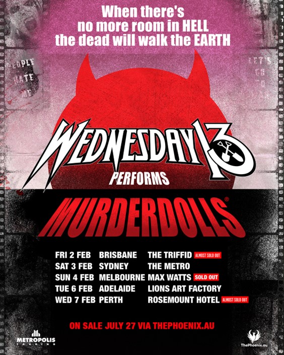 Melbourne’s show at Max Watts has SOLD OUT and limited tickets remain for Brisbane and Perth. So dust off your Gothic Sunday Best, dye your hair black, grab your blood stained valentine and come dressed to depress.