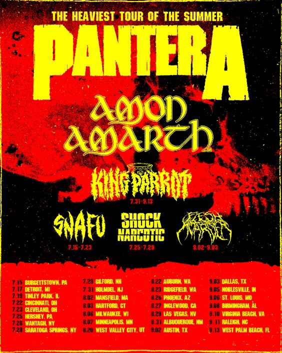 Earlier this week, AMON AMARTH kicked off their US live takeover with Pantera. Accurately dubbed The Heaviest Tour Of The Summer, the US amphitheater tour commenced on July 15th in Burgettstown, Pennsylvania and will wind its way through over two dozen cities, coming to a close on September 13th in West Palm Beach, Florida. Additional support is being provided by Snafu, Shock Narcotic, King Parrot, and Flesh Hoarder on select dates. Not to be missed, AMON AMARTH is armed with as much of their infamous theater production as the stage can handle.