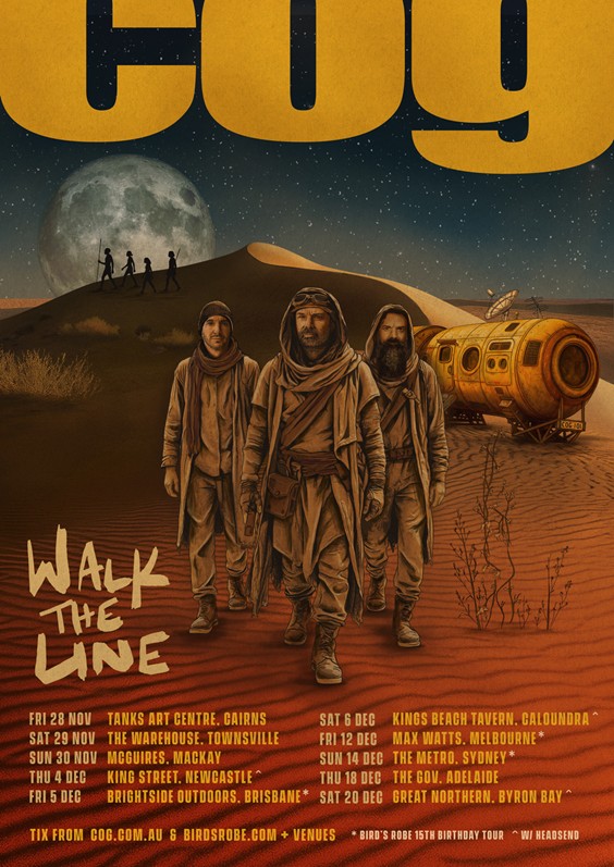 In honour of the upcoming release of Walk The Line, Cog will tick off headline shows starting in Cairns on Friday 28 November, before heading to Townsville, Mackay, Newcastle, Caloundra, Adelaide and a closing show in Byron Bay on Saturday 20 December. Cog will also be performing this December as part of the Bird’s Robe 15th Birthday Tour on Friday 5 December in Brisbane, Friday 12 December in Melbourne and Sunday 14 December in Sydney.