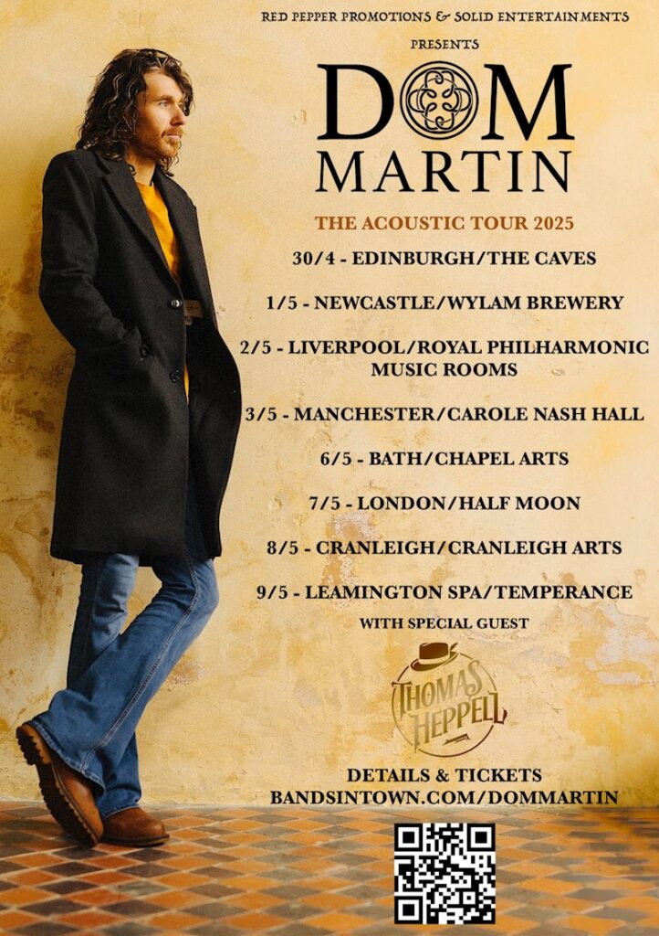 Fresh off winning Instrumentalist of the Year at the 2025 UK Blues Awards, acclaimed guitarist and singer-songwriter Dom Martin is gearing up for his much-anticipated UK Acoustic Tour.