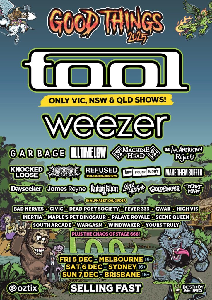 While Good Things Festival has a strict 16+ age limit, one notable exception is being made: 15-year-old viral sensation MAPLE’S PET DINOSAUR will join a stacked lineup featuring global heavyweights TOOL, WEEZER, GARBAGE, REFUSED, THE ALL-AMERICAN REJCTS and KNOCKED LOOSE on the entire three-day East Coast run.