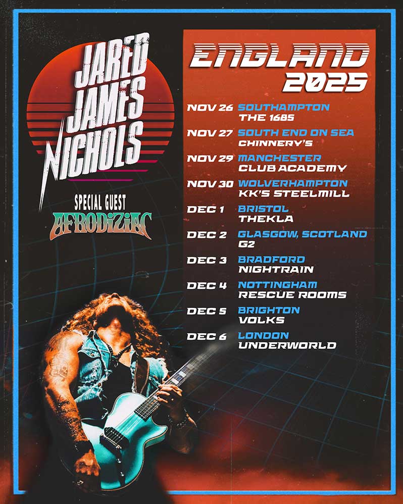 Critically acclaimed American blues rock guitarist, singer and songwriter Jared James Nichols returns to the UK for a 10-date November/December 2025 Tour. Jared’s special guest is AFRODIZIAC. Tickets go on sale at 10am on Friday July 18th via Bandsintown.