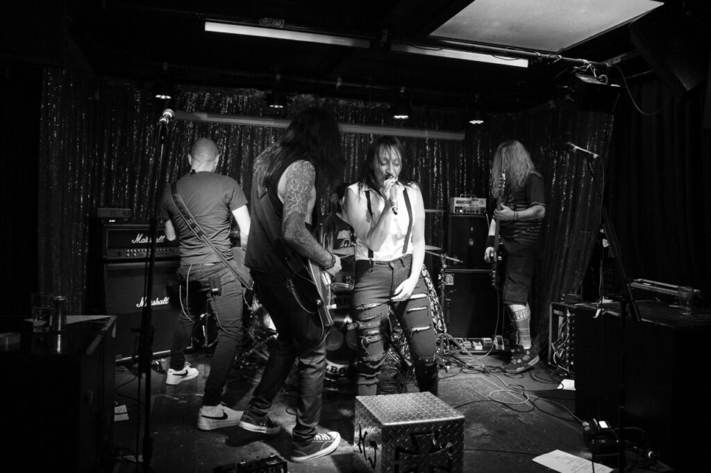 The next band on tonight’s bill are the Sunshine Coast’s very own Awaken The Hate, a band I knew very little of until now. I had heard their material on Spotify, but had never really had a chance to immerse myself in them until tonight. This quintet delivered a set of originals that are inspired by classic metal, pulling influence from all eras of metal and hard rock while making it all their own. From Pantera to NWOBHM and thrash it was all there in these songs. Their power is something to behold, big riffs, heavy grooves and vocals/lyrics that create incredible storytelling. Frontman Ben Rogers is fierce intimidating and powerful.