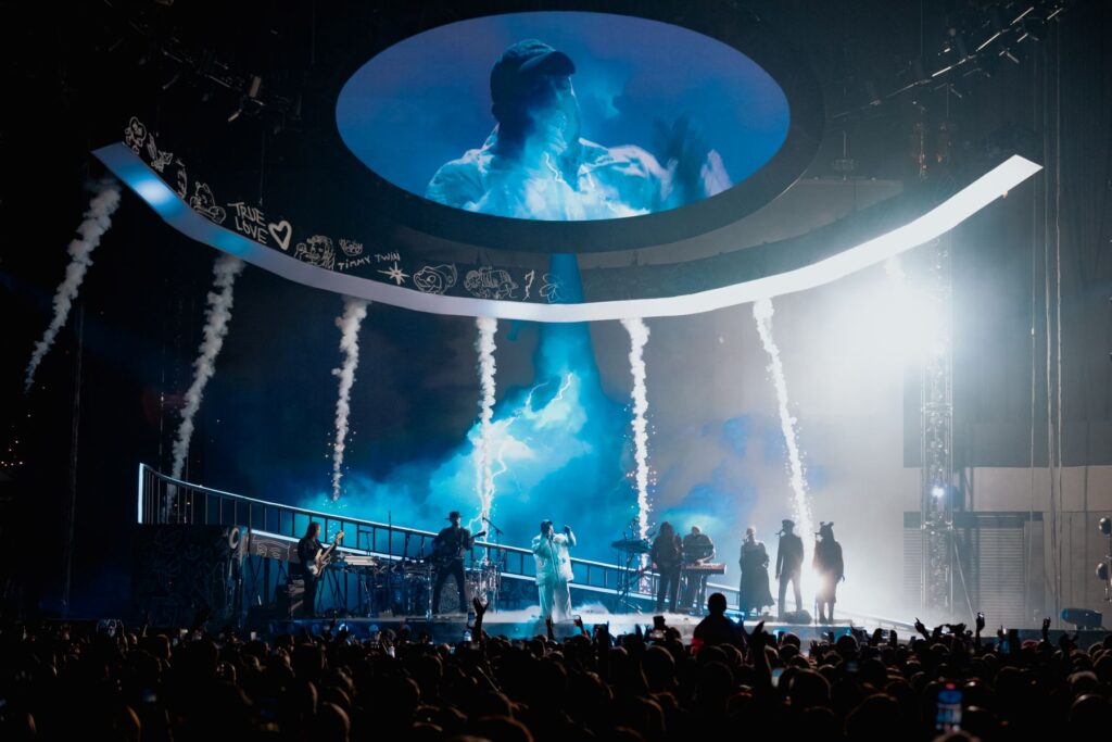 Then came a playful turn – “Guilty,” followed by a nod to his YouTube roots. A giant jukebox prop appeared, and Swims invited fate to pick a cover. The winning combo? B2 — Shania Twain’s “You’re Still the One.” Cue mass singalong.