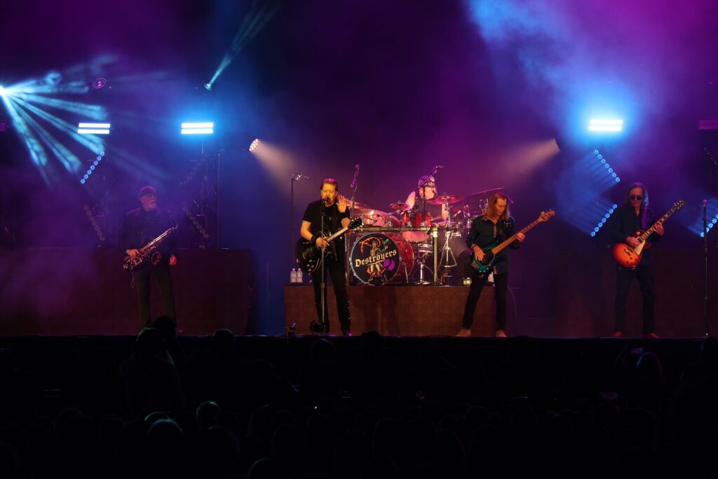 Strutting on to the stage with a seam of spangles George Thorogood & The Destroyers have arrived. We’re not even halfway through the first song, Rock Party, before people are up on their feet, round the barriers and rocking away! … but … we’re in Perth and security here don’t like that… sit you must (insert sighing facepalm here)