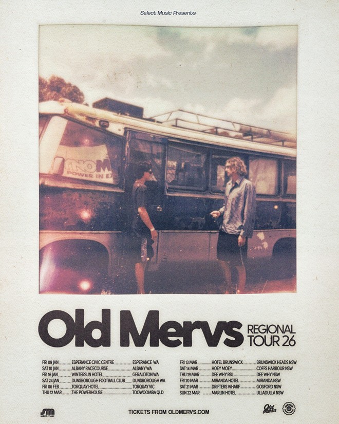 Following the recent announcement of their ‘On a Truck’ festival experience in Albany and Dunsborough, Old Mervs have doubled down and revealed a stack of regional dates for the first quarter of 2026. Dave and Henry will be hitting up regional centres across Western Australia, Victoria, Queensland and New South Wales from January through to March, belting out tracks for their 2025 debut album along with old favorites. Tickets are on sale now!