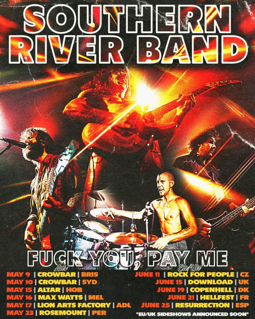 WA rock’n’roll saviours The Southern River Band have released their towering new single and rally cry, “F**k You, Pay Me”, out now via Civilians. The band will take the single out on a headline tour around the country in May.