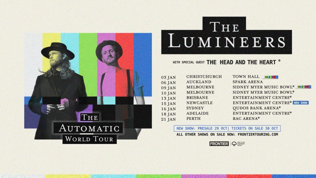 Fresh from wrapping their massive North American leg with a triumphant finale in Mexico City, 2x GRAMMY® nominees The Lumineers are making their AUTOMATIC World Tour even bigger – today announcing a brand-new headline show at Newcastle Entertainment Centre on Thursday 15 January, as part of their upcoming Australia and New Zealand run, their first live shows down under since 2022.