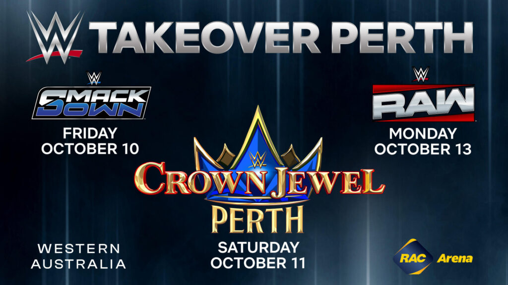 WWE, in partnership with the Western Australian Government through Tourism Western Australia, today announced that Crown Jewel: Perth will headline a WWE weekend takeover in Perth this October. Crown Jewel: Perth will take place at RAC Arena in Perth, Western Australia, on Saturday, October 11, 2025. The venue will also host Friday Night SmackDown on Friday, October 10, and Monday Night Raw on Monday, October 13.