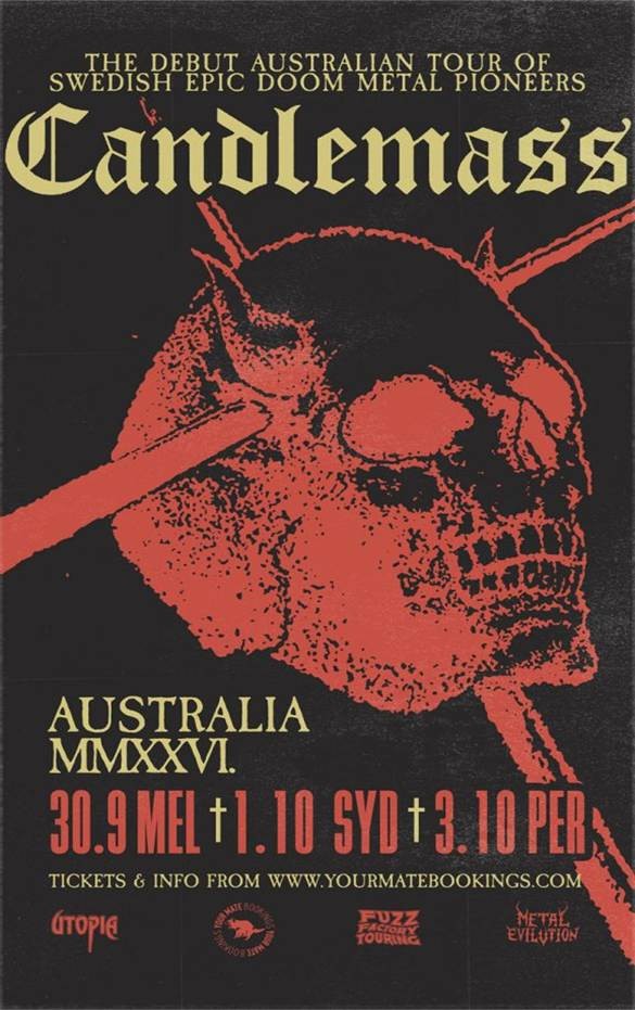 Tickets from: https://yourmatebookings.com/tours/candlemass-aus-tour-2026/