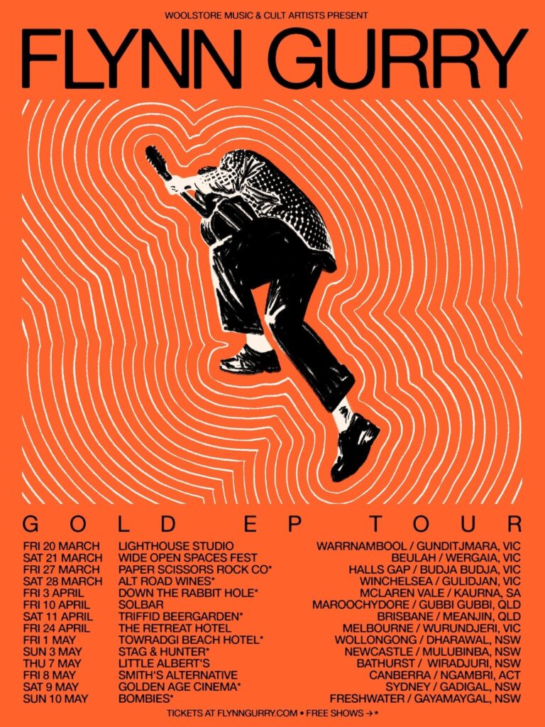 Kicking off on Friday March 20 in Flynn Gurry’s hometown Warrnambool, Flynn will then trek through Buelah, Halls Gap, Winchelsea, McLaren Vale, Maroochydore, Brisbane, Melbourne, Wollongong, Newcastle, Bathurst, Canberra and Sydney, before closing out on Sunday May 10 iN Freshwater. Tickets for Flynn Gurry’s Gold EP tour are on-sale now.