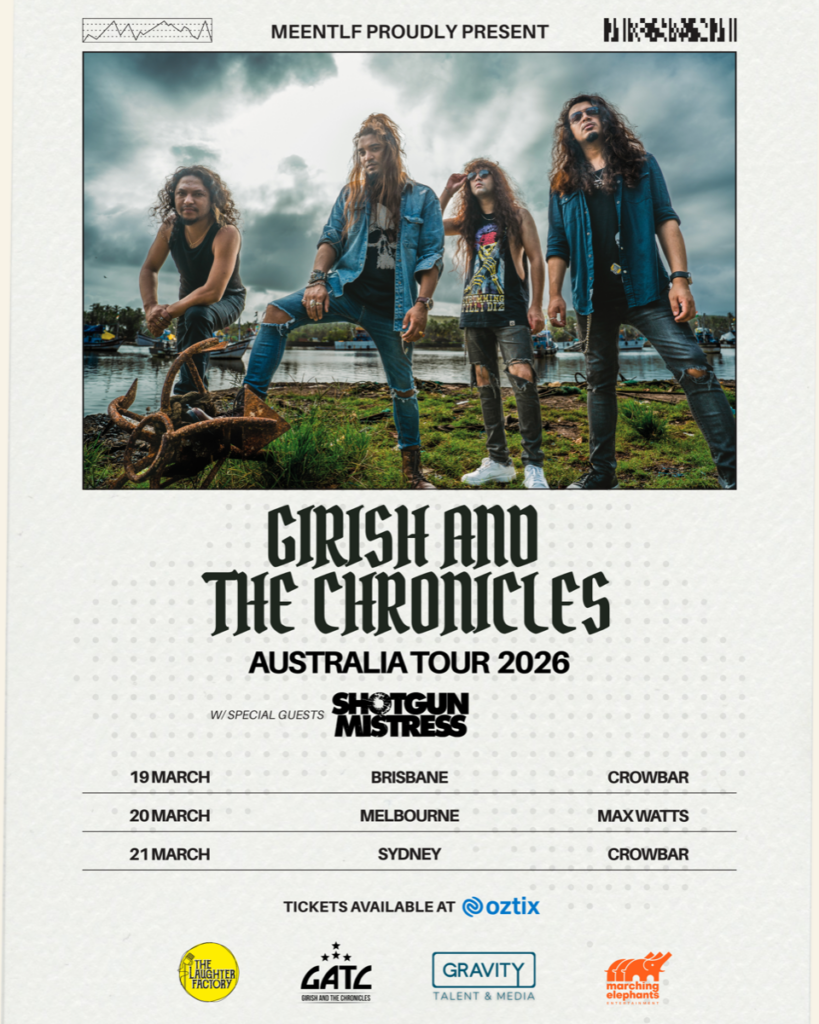 Girish And The Chronicles make their first-ever Australian tour in March 2026, unleashing their high- voltage live show alongside Melbourne hard-rockers Shotgun Mistress. Based in Bengaluru, GATC have become one of India’s most prominent rock exports. Fronted by powerhouse vocalist Girish Pradhan, the band’s acclaimed albums and relentless touring have fuelled a fast-rising global profile, including performances with Guns N’ Roses, Skid Row, Alter Bridge and Hollywood Vampires. They supported GNR at Abu Dhabi’s Etihad Arena in 2023 and again in India in 2025.