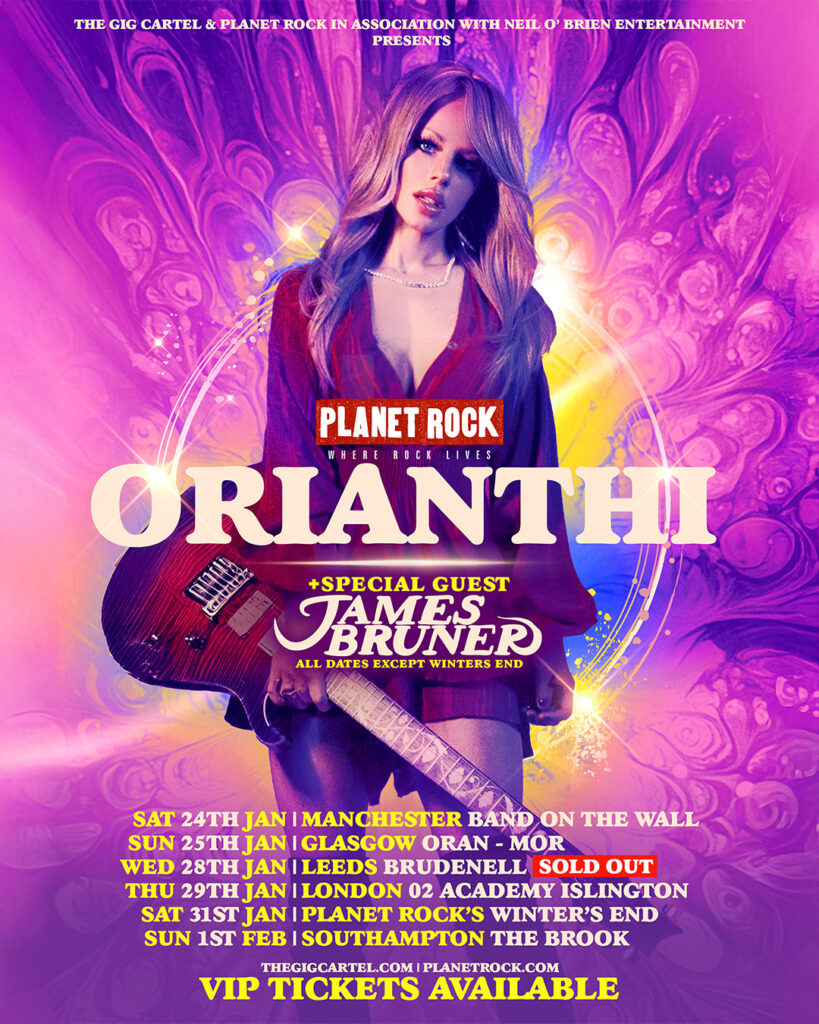 Following the release of her new album Some Kind of Feeling, critically acclaimed guitarist and singer Orianthi will embark on her UK tour in January 2026. Orianthi’s special guest at all concerts (except Planet Rock’s Winter’s End) is James Bruner. Orianthi’s concert at Leeds Brudenell on Wednesday January 28th is sold out. Tickets for all other concerts are available from The Gig Cartel.