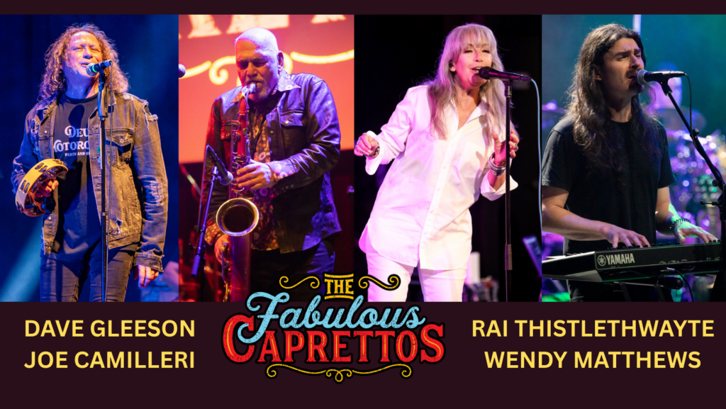 Multi Award winner Dave Gleeson (The Screaming Jets/The Angels), Rai Thistlethwayte (Thirsty Merc/Joe Satriani/Sammy Hagar/TOTO), Joe Camilleri (The Black Sorrows), Wendy Matthews, will be performing their biggest hits together on stage as the Caprettos! plus special guest.