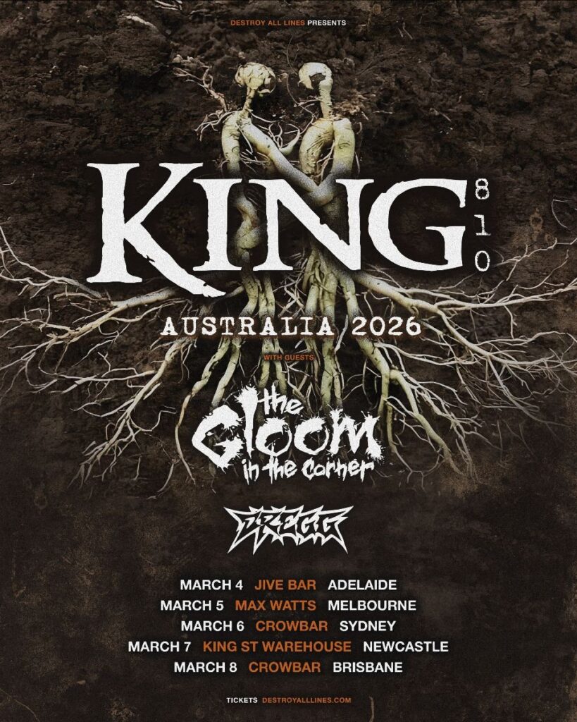 Closing out 2025 in Europe supporting Swedish metalcore greats Aviana, The Gloom In The Corner will support American heavies King 810 nationally in Australia this March, and will also perform this October as part of the entirely sold out inaugural Hellbound Cruise alongside Parkway Drive, Polaris and more.